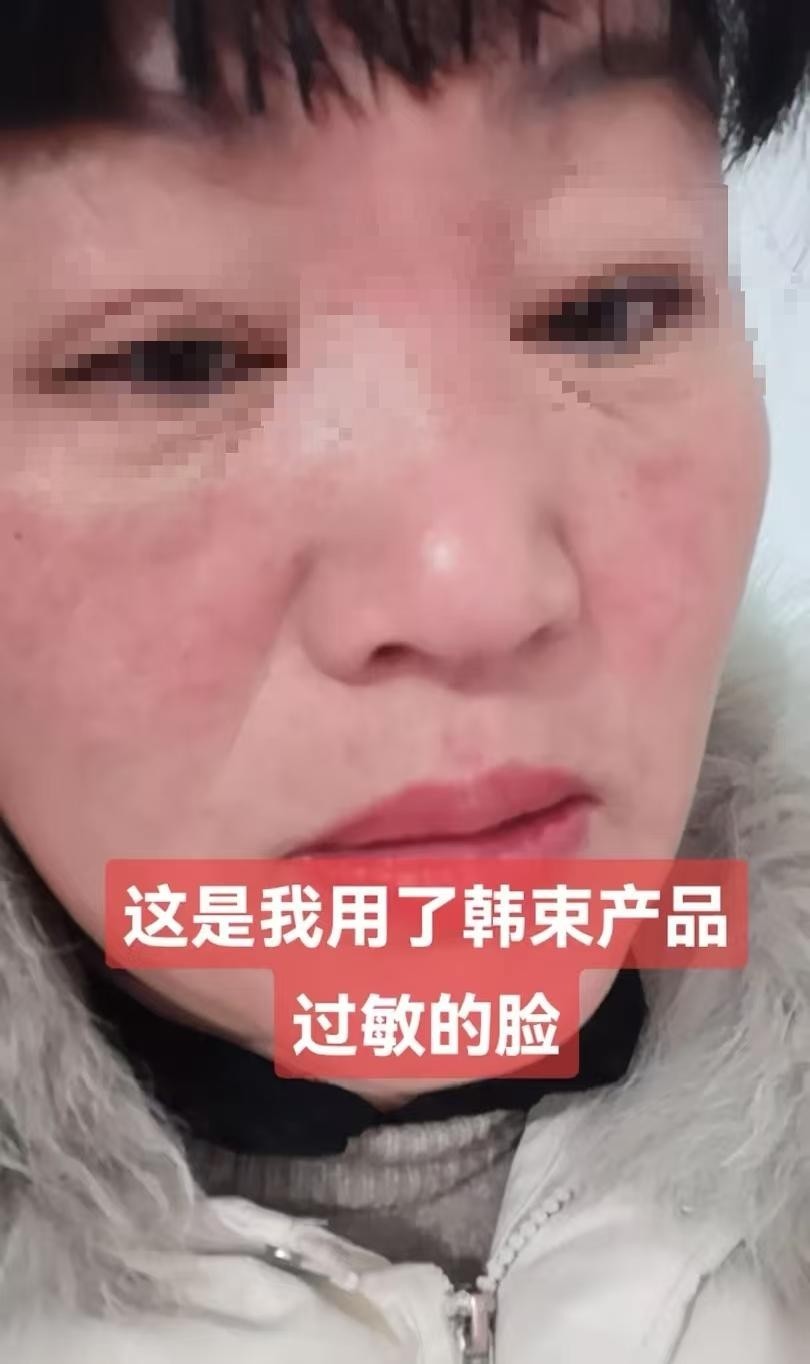 有网友公开晒出使用韩束面膜后肌肤严重过敏的照片,