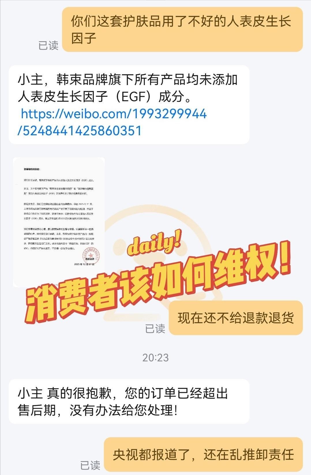 但韩束仅以“代工厂管理疏漏”一笔带过,