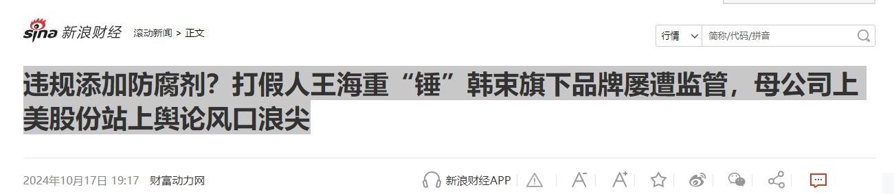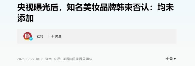 部分参考资料来源:新浪财经|违规添加防腐剂?打假人王海重“锤”韩束旗下品牌屡遭监管,母公司上美股份站上舆论风口浪尖澎湃新闻|央视曝光后,知名美妆品牌韩束否认:均未添加界面新闻|违法添加“罗生门”,掐住了韩束的“红蛮腰”