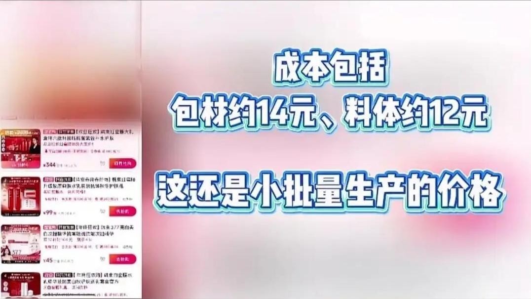 内部精华液原料成本仅为12元,外加14元的包装支出,合计仅26元。